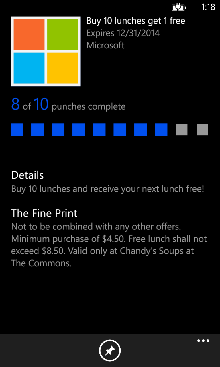 Although it never gained local traction, Loyalty was adopted by the Microsoft Commons food court as a free‑meal reward program.